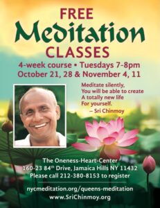 All of our meditation classes are sponsored by the Sri Chinmoy Centre